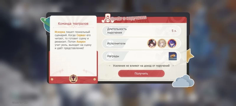 - Лофу Сяньчжоу: 5 эссенций звездного огня, 60000 кредитов