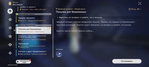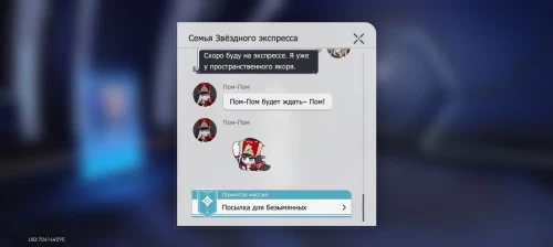 В самом начале события вы получите сообщение в чате Звездного экспресса. Пом-Пом сообщит о загадочной посылке и пригласит вас открыть ее. Из меню сообщений вы можете перейти в журнал заданий и отслеживать квест.