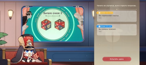 Эта локация служит в качестве обучения, поэтому для всех игроков кубики будут выпадать одинаково.