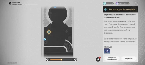 Телепортируйтесь в общий вагон и поговорите с Мэг. Она попросит вас передать посылку другому Безымянному. При этом версия игры без наград останется у вас.