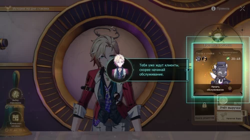 Здесь все просто, так как клиент сразу назовет коктейль, который захочет выпить. Отыщите «Затерянную ночь» в меню, а затем приступите к его приготовлению. В левом верхнем меню будут демонстрироваться все шаги, которые вам нужно предпринять, поэтому вы вряд ли запутаетесь. На всякий случай мы сделали гифку с полным процессом создания напитка, с которой можно ознакомиться ниже.