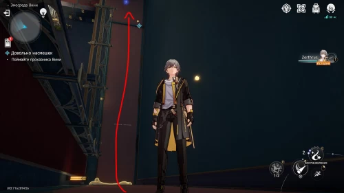 Теперь вступите в диалог с Командиром и войдите в его эмосреду. Подойдите к сферомету и сядьте в него. Включите обе линзы и поверните их так, как показано на картинке ниже. Затем нажмите на пробел, чтобы перебраться на другую сторону.