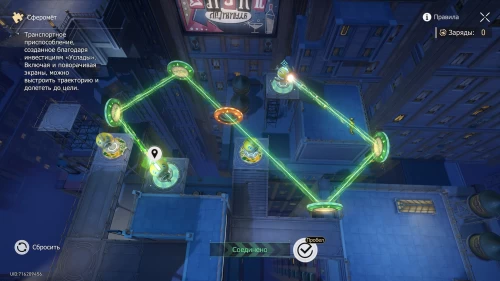 Теперь поговорите с Меланхоликом и войдите в его эмосреду. Подойдите к сферомету и взаимодействуйте с ним. Далее включите все 8 линз и поверните их в те же стороны, что и на изображении ниже. Потом нажмите на «Пробел» для перемещения на другую сторону.