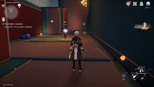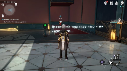 Завершив свою смену, подойдите к Девице и Меланхолику, стоящим неподалеку, и послушайте их разговор. Затем вступите в диалог с Девицей и войдите в ее эмосреду. Пройдите в 3D-комнату, нажмите на кнопку и подойдите к телевизору, после чего тот исчезнет.