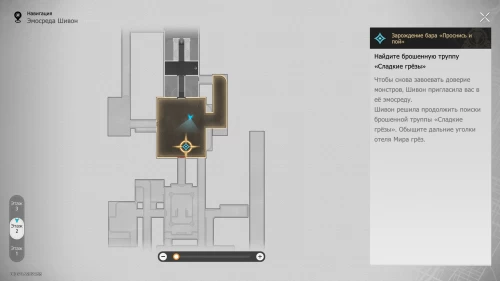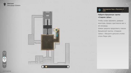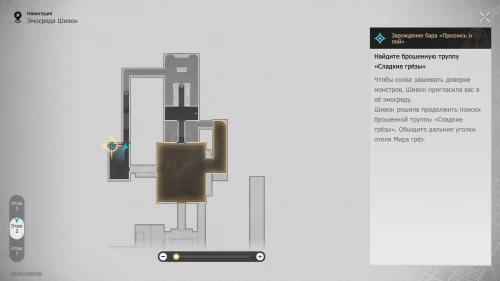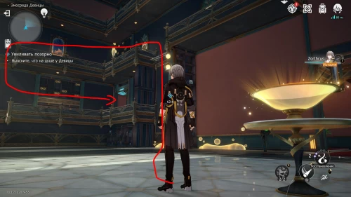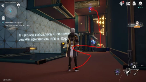 Затем подойдите к Шивон и Командиру, стоящим впереди. Далее спуститесь вниз, пройдите через двойные двери и приблизьтесь к Вини в просторном помещении. Теперь возвратитесь в бар. Взаимодействуйте с мозаикой грез и расположите фрагменты так, как показано на гифке ниже.