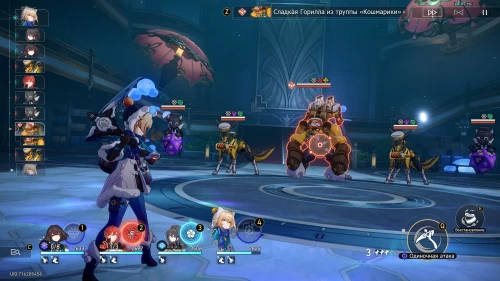 Затем вы услышите крик о помощи. Спуститесь вниз по лестнице и вступите в бой со Звездочкой. Данный противник уязвим к огненному, физическому и мнимому урону, поэтому возьмите дамагеров указанных стихий. Советуем также взять щитовика, чтобы снаряды гориллы отбивались от щита обратно в нее.
