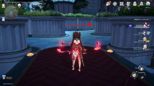 В итоге вы добежите до развилки, которая ведет к центральной части лабиринта. Зайдите на площадку с гигантской колонной. Слева от нее из клумбы на вершине забора будут торчать нужные перья.