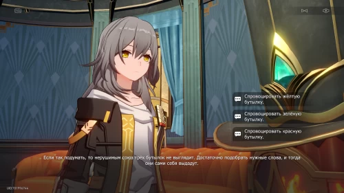 Далее вам необходимо определить, какой напиток вы возьмете с собой. Выбор не отразится на получении ачивки, но птица, выдавшая поручение, отметит аромат желтой бутылки, крепость – красной и качество – зеленой.