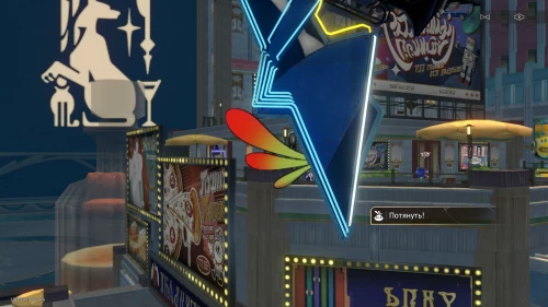После приземления направляйтесь к противоположному краю платформы. Там вы увидите несколько гигантских перьев, торчащих из-за вывески. Осмотрите их, чтобы выслушать проблемы пташки.