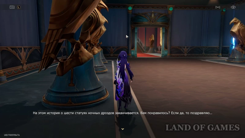 Как только вы узнаете, кого символизирует каждая статуя, взаимодействуйте в 7-й раз повторно с любым дроздом. Напоследок нам пояснят, что эти истории – ничего не стоящий вымысел, а реальные основатели кланов на Пенаконии были не легендарнее обычных людей.