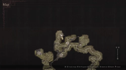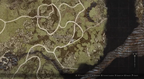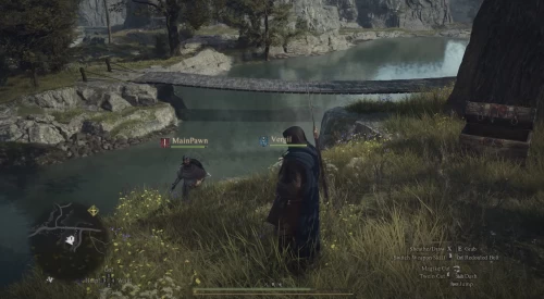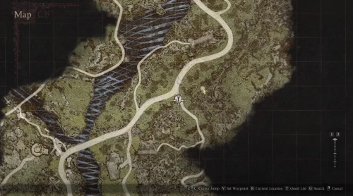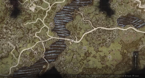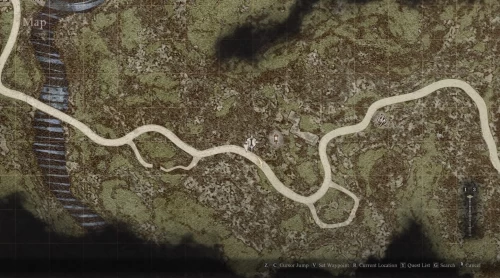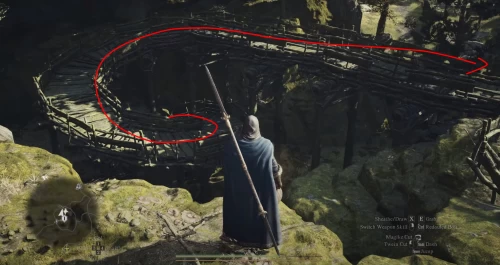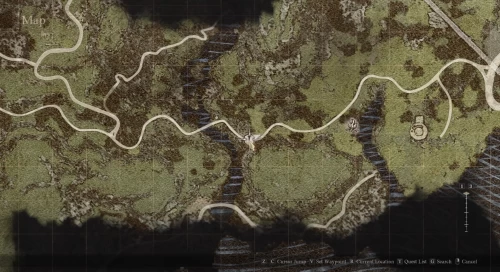 Двигайтесь по основной дороге, а когда пройдете через третий мост, сверните вправо на узкую тропинку возле метки «Руины у реки» и идите на север. Подойдя к маленьком мосту, поверните налево к развалинам сооружения. Войдите туда, и вы увидите жука, висячего на большом дереве. Будьте осторожны, так как рядом бродят гоблины.