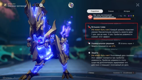 Далее вашей задачей будет перевести монстра в режим «Вспышка гнева». В это состояние он входит после набора пяти стаков, которые набираются при активации противником своих умений. Отследить их текущее количество можно по строке состояния или же в описании противника.