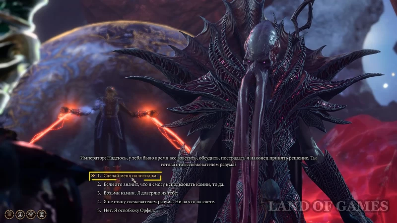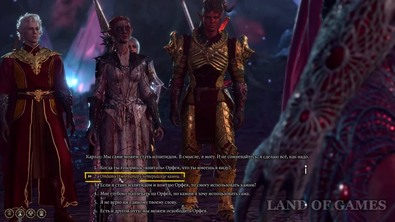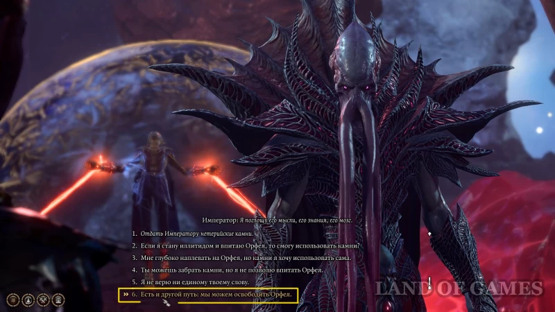 Как известно, ваш выбор поставит точку в том, кто конкретно получит силу нетерийских камней: Император, Орфей в облике мозгоеда или персонаж отряда (способности компаньонов показали на скриншотах ниже).