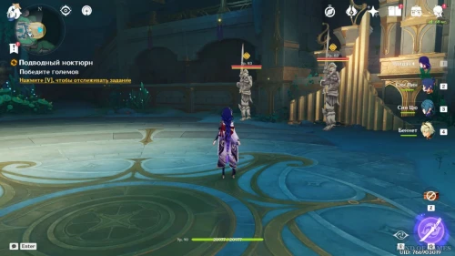 Что касается его характеристик, то в плане здоровья и атаки он примерно сопоставим с другими элитными врагами, например, зверями сюаньвэнь и хиличурлами-изгоями. Ознакомиться со всеми параметрами стража можно на изображении ниже (2P, 3P и 4P показывают параметры при игре в кооперативе).