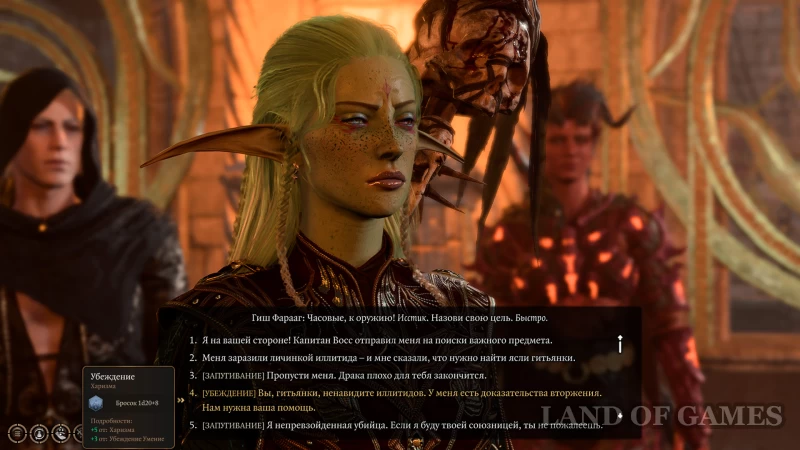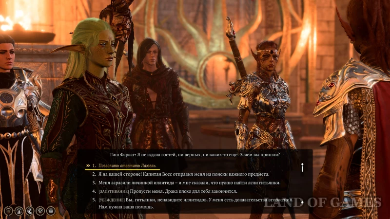 - Взяв Лаэзель, вы без проблем пройдете мимо Гиш Фарааг: выберите в диалоге вариант «Позволить ответить Лаэзель», и та обеспечит вам безопасный путь через ясли;
