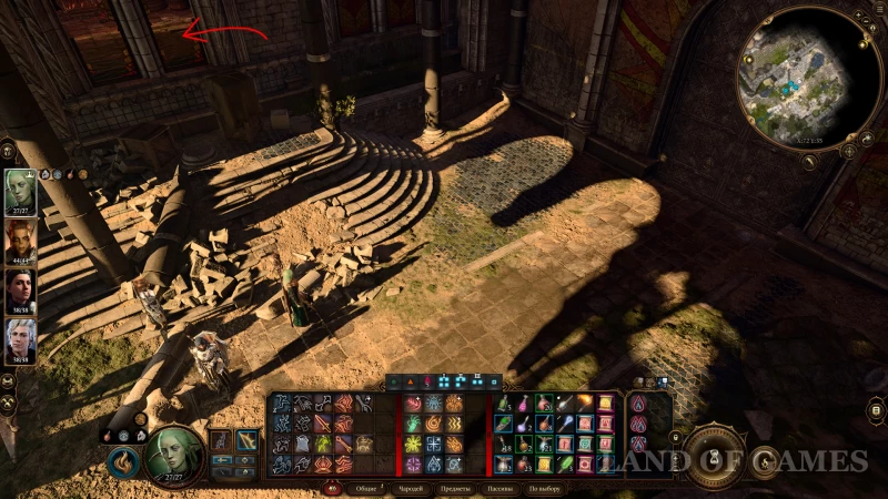С южной статуей не все так просто: если бонус к Атлетике у вашего персонажа довольно высок (+8/+10), то при взаимодействии с монументом, вы вероятнее пройдете проверку на характеристику и сможете легко провернуть памятник (попробовать можно всеми персонажами).