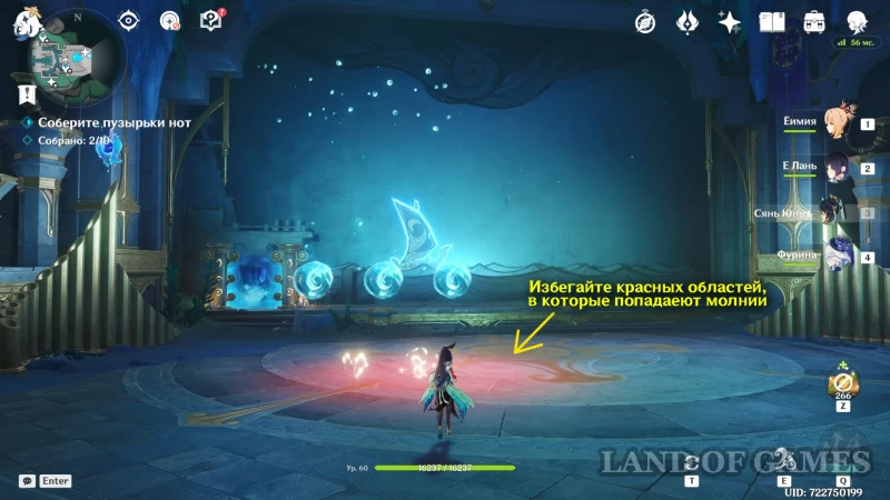 - Во время этапа с молниями избегайте красных областей, в которые целится разряд;