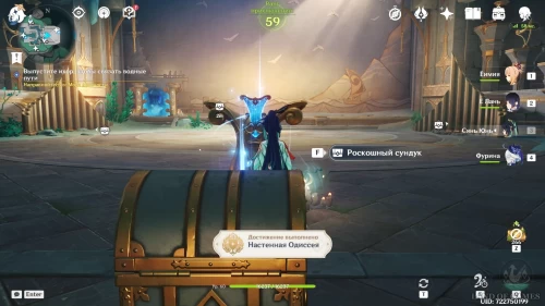 В Genshin Impact роскошный сундук в Обветшалом замке является частью головоломки с непредсказуемой сценой, в рамках которой вам необходимо будет собирать пузырьки нот. Пройдя данное испытание, вы не только получите ценные сокровища, но также разблокируете достижение «Настенная Одиссея» и откроете мелодию «Горн путешествия» для автогармонической музыкальной шкатулки.