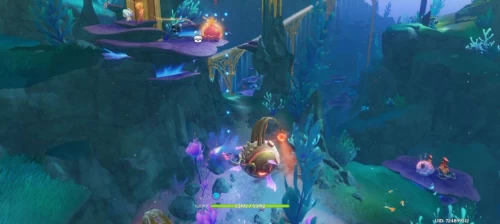 Как только вы попадете в поле их зрения, датчик станет красным, а «рот» закроется, и награда будет заблокирована. Чтобы вернуть механизм в обычное состояние, подплывите к его хвосту и лопните пузырь, выпустив звуковую волну — этот навык вы получите в ходе квестовой цепочки «Оды Гармонии». Также можно выйти из поля зрения удильщика и подождать, пока пузырь не исчезнет сам.
