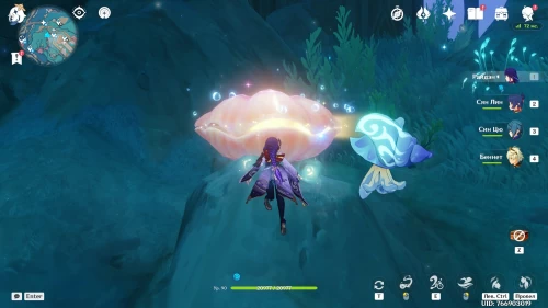 Далее начните плыть за осьминогом на восток и вверх, чтобы добраться до огромной ракушки. Стукните по ней левой кнопкой мышки, чтобы она открылась, и вы смогли выпустить поющего пухленя.