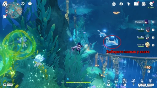 , однако ничего не произойдет. Снова взаимодействуйте с существом, а потом начните плыть за ним, и он приведет вас к коралловым рифам.