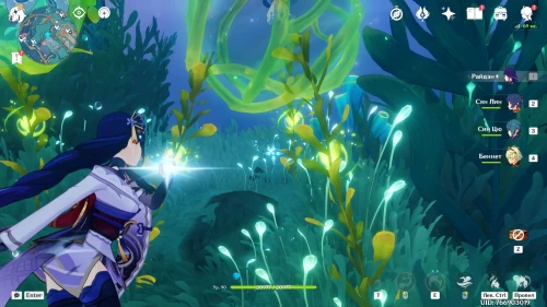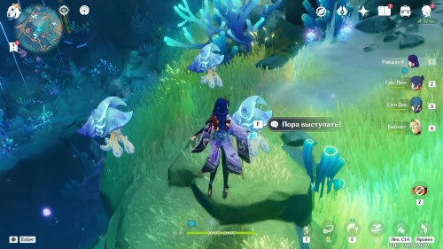 Затем прицельтесь в зеленые сферы на водорослях и уничтожьте их полученным умением (клавиша «Е»). Освободив всех осьминогов, вернитесь вместе с ними к анемонам, а потом выберите опцию «Пора выступать».