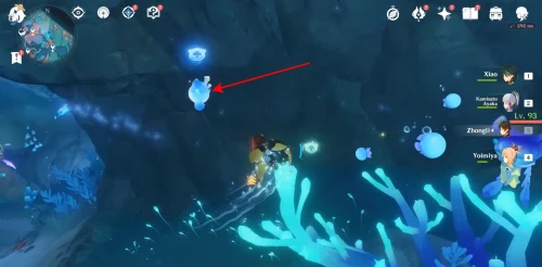 Совсем рядом с предыдущим местом располагается груда камней. Разрушьте ее с помощью умения плавающей рядом медузы, чтобы достать спрятанный сундук.