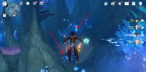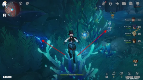 Отправляйтесь к месту западнее Врат Януса. На дне вы найдете груду камней. Разбейте ее с помощью умения плавающей рядом медузы. Из-под завала вырвутся угри. Уничтожьте их, чтобы появилось сокровище.