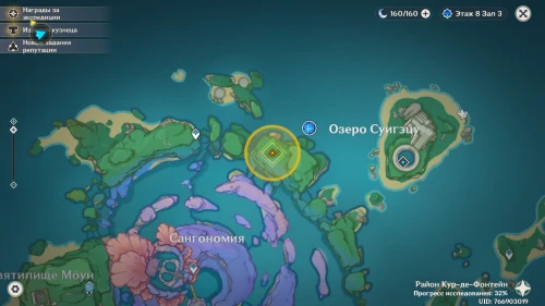 Вы получите пригласительное письмо от Аратаки Итто и решите направиться на остров Ватацуми, чтобы поучаствовать в подготовке к фестивалю. Переместитесь к телепорту возле отмеченной зоны, и в ее центре вы обнаружите Итто и Дворжака – поболтайте с ними.
