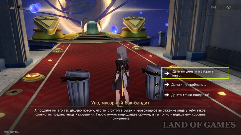 Заплатите 1000 кредитов и получите двойную награду за успешный разговор с мусорками.