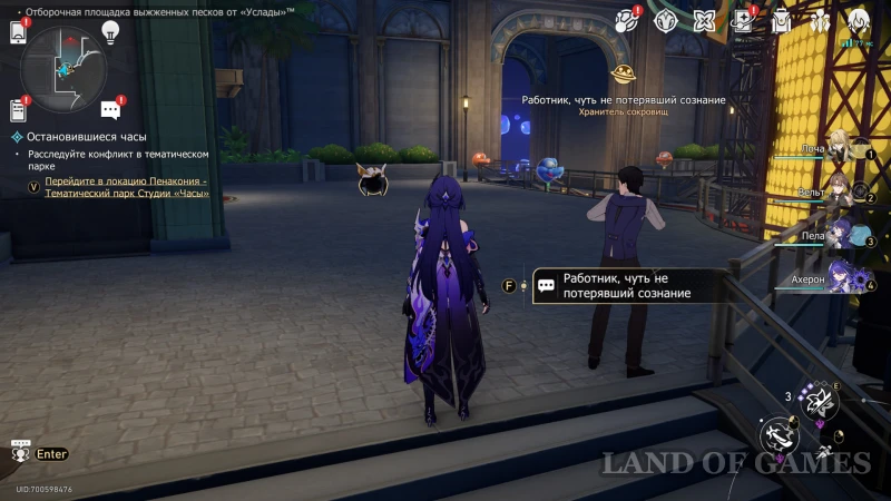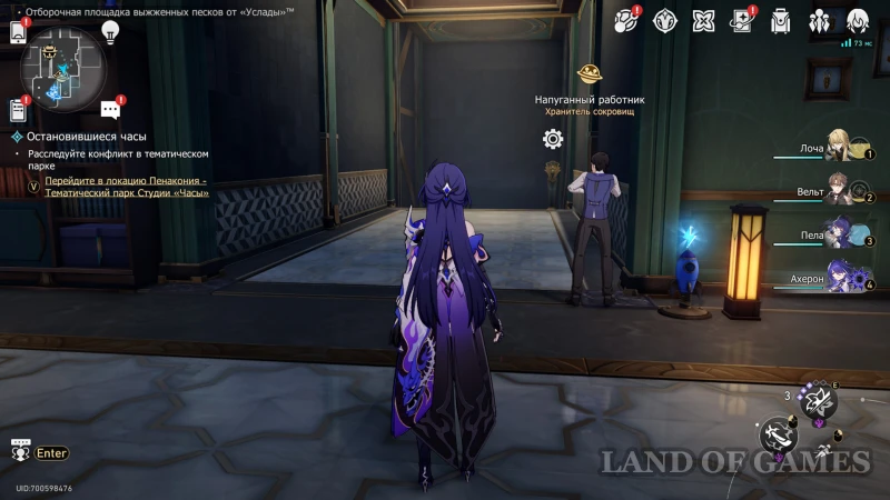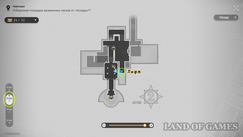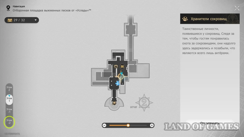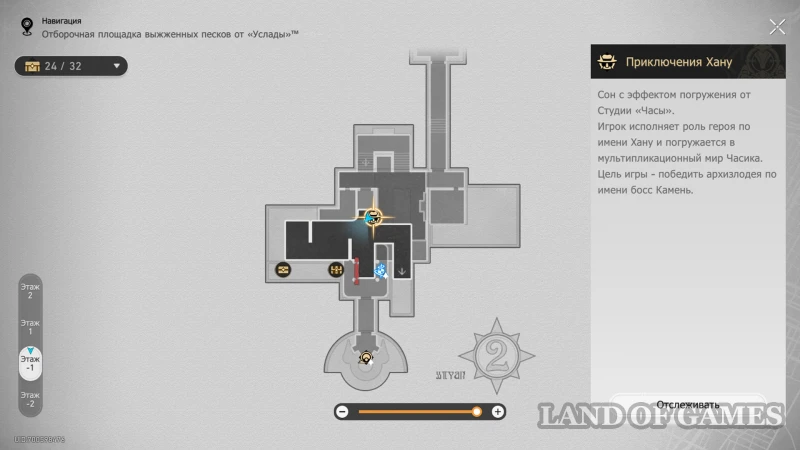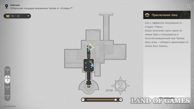 Около лифта на 1 этаже стоит Напуганный хранитель сокровищ. Узнайте о причинах его страха и пройдите к лифту, на котором появится вариант перехода на «??? этаж». Снизу мы найдем гномика, предлагающего сыграть в «Атаку Хану» и один обычный сундучок.