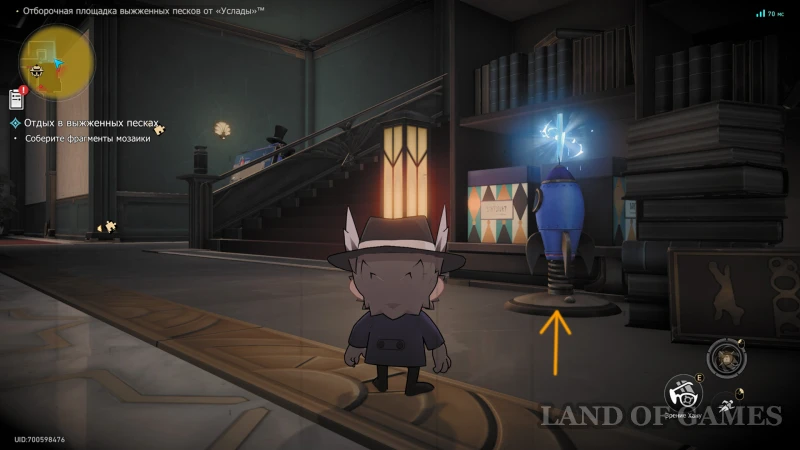 Следующая награда стоит за дверью кабинета Хану, на втором этаже карты. Вы попадете сюда, если восстановите картину-пазл на прошлом уровне, за которой скрывается автомат для преображения. Вернув нормальный размер, можно легко подняться на второй этаж по лестнице около появившегося пульта смены облика.