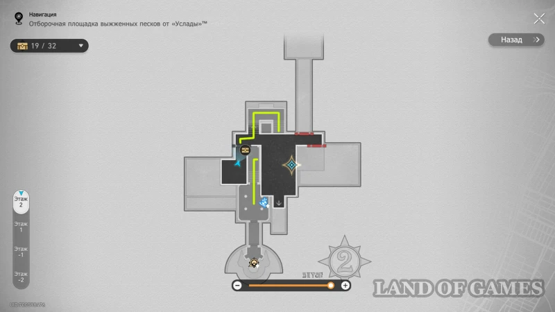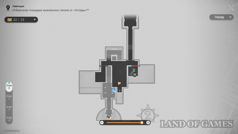 Чтобы попасть на -2 этаж особняка и получить 32-й сундучок, откройте секретную часть локации: в окне выбора маршрута переключите элементы головоломки, кликая по ним указанное на скриншоте выше количество раз.