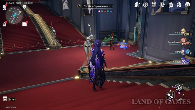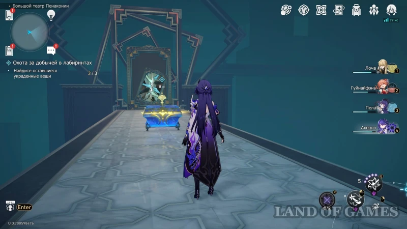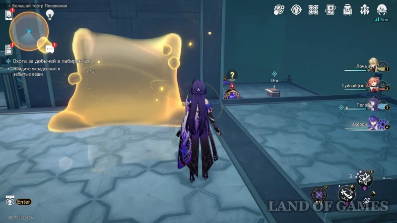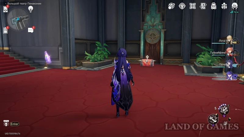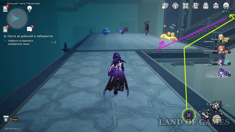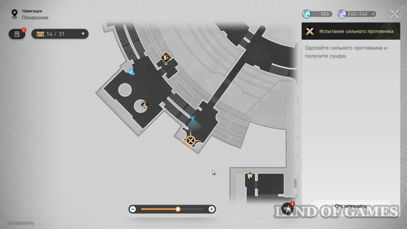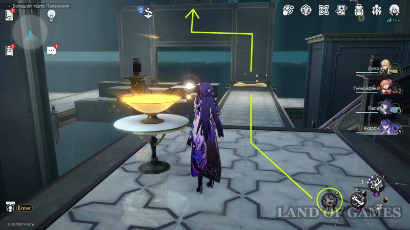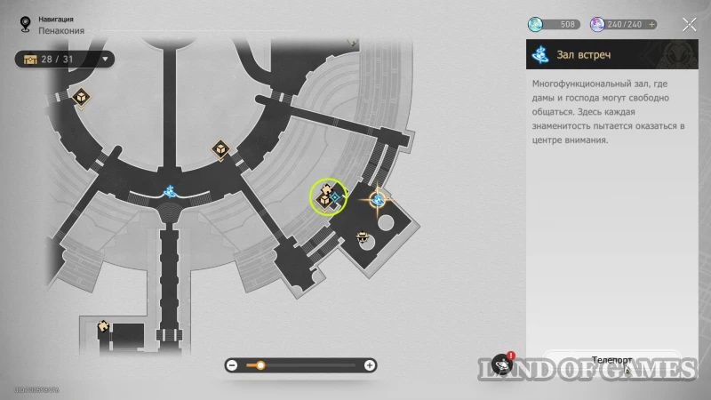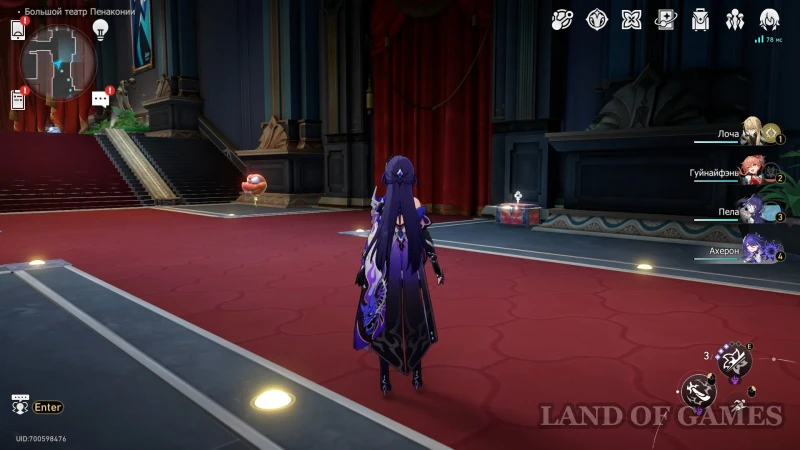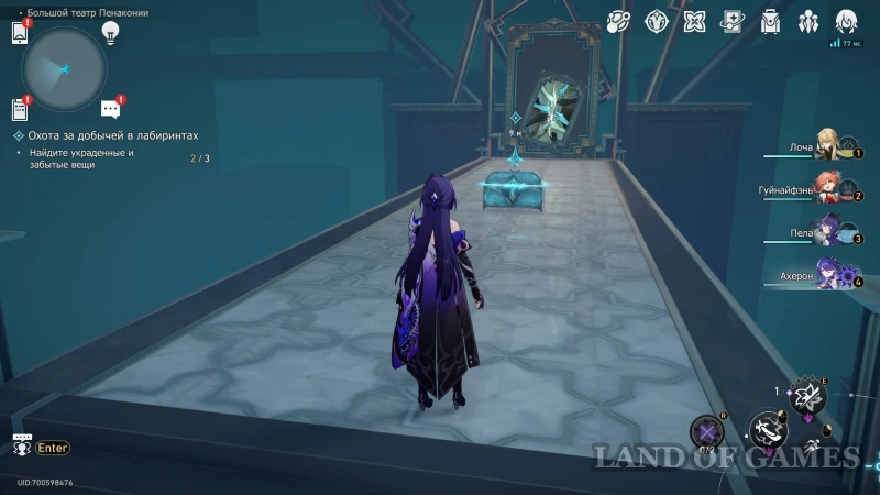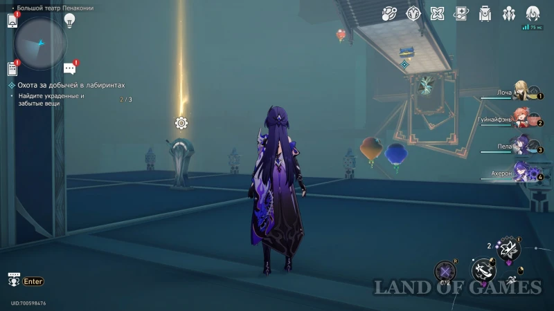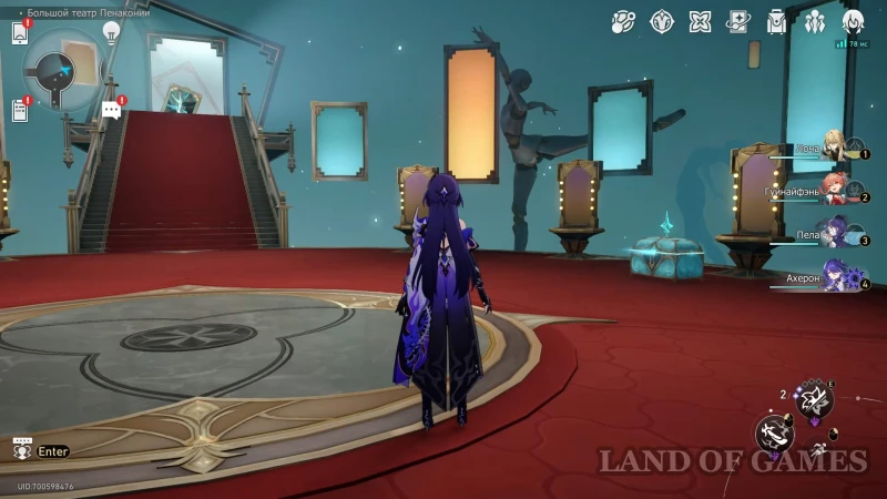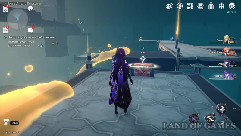 Теперь перейдем в восточную часть карты: сверните за ближайший занавес справа от якоря «Зал гармонизации». На входе, справа от мобов, стоит баннер с джентльменом в шляпе, а перед ним — обычный сундучок.