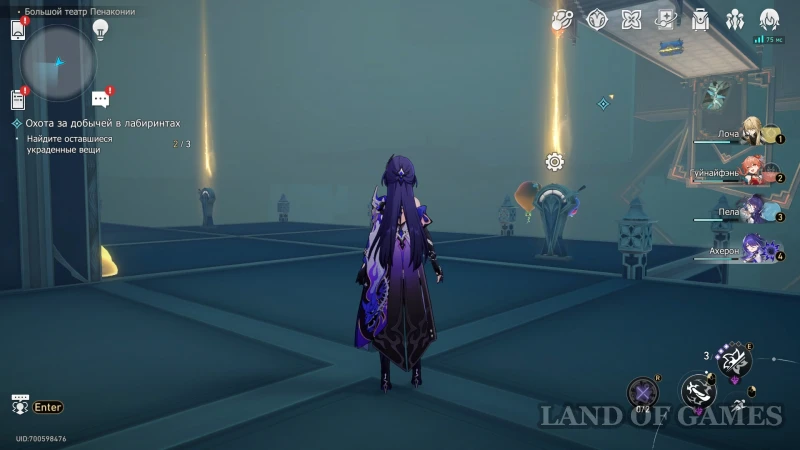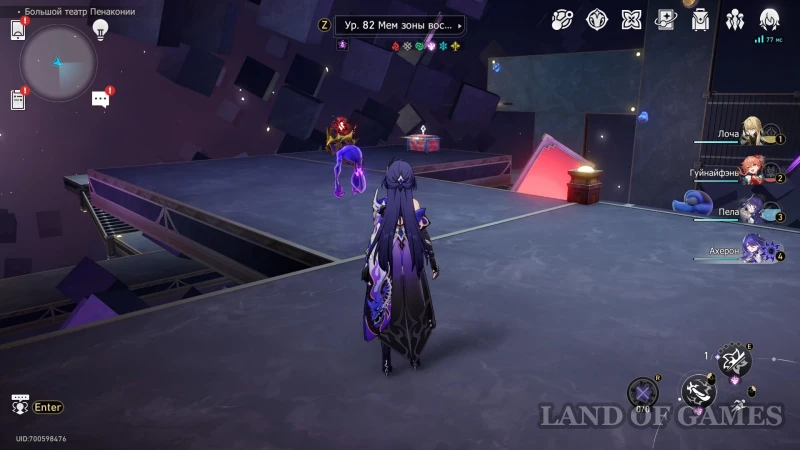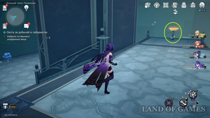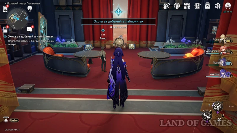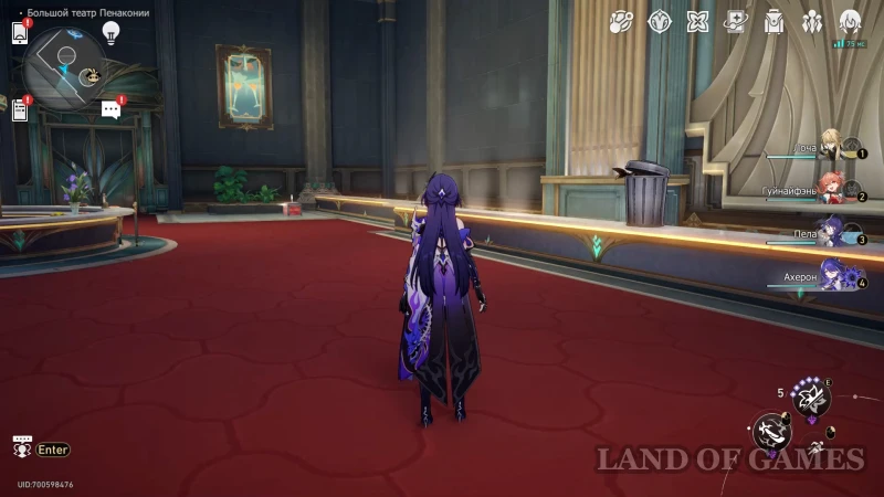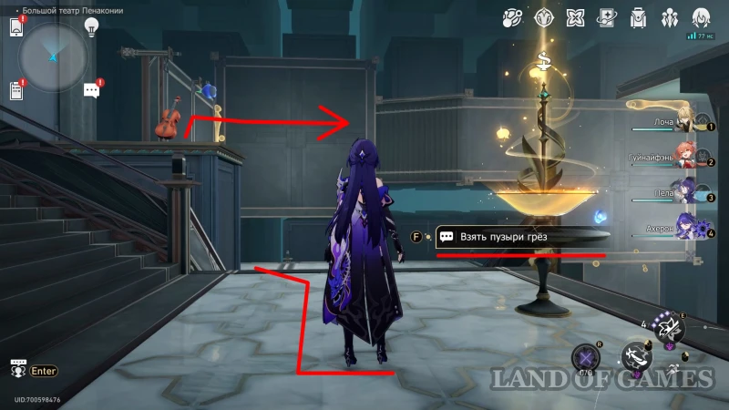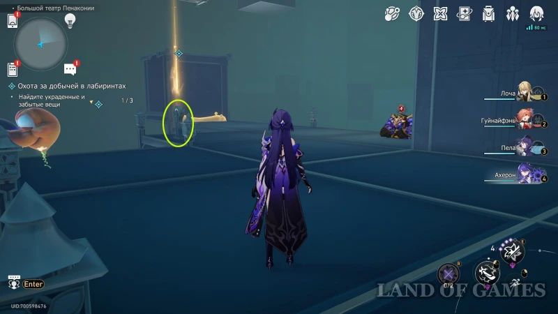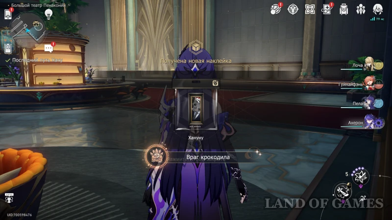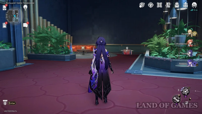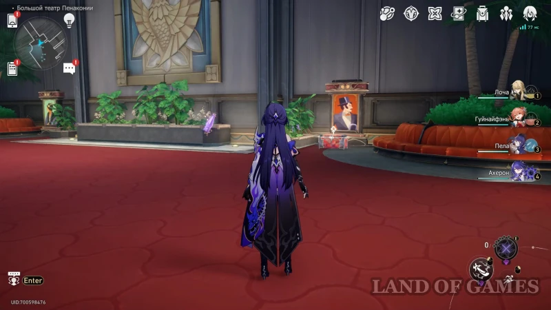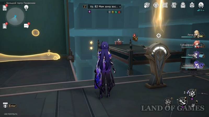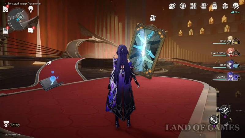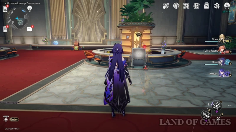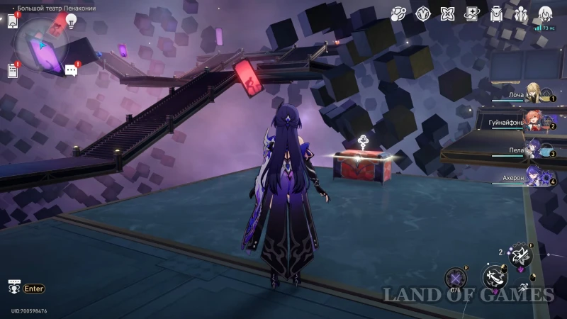 Теперь перейдем в восточную часть карты: сверните за ближайший занавес справа от якоря «Зал гармонизации». На входе, справа от мобов, стоит баннер с джентльменом в шляпе, а перед ним — обычный сундучок.