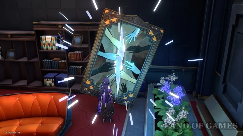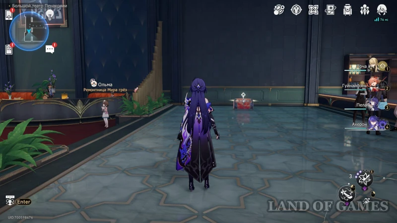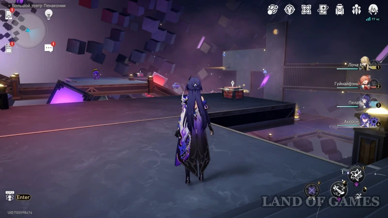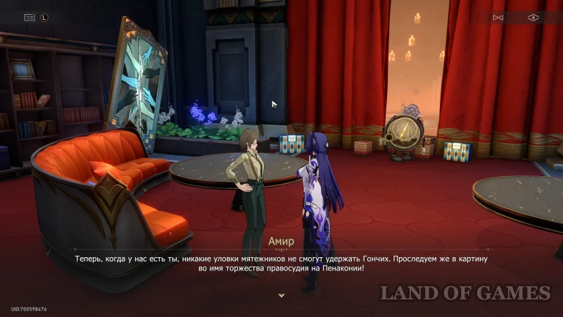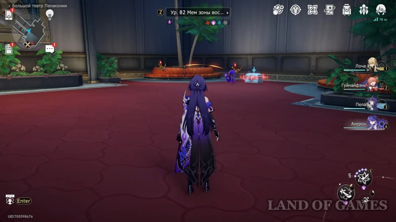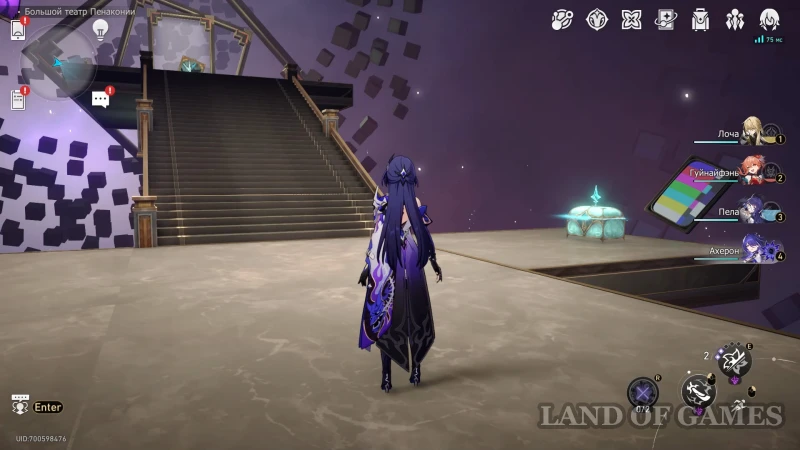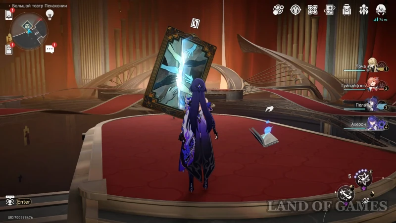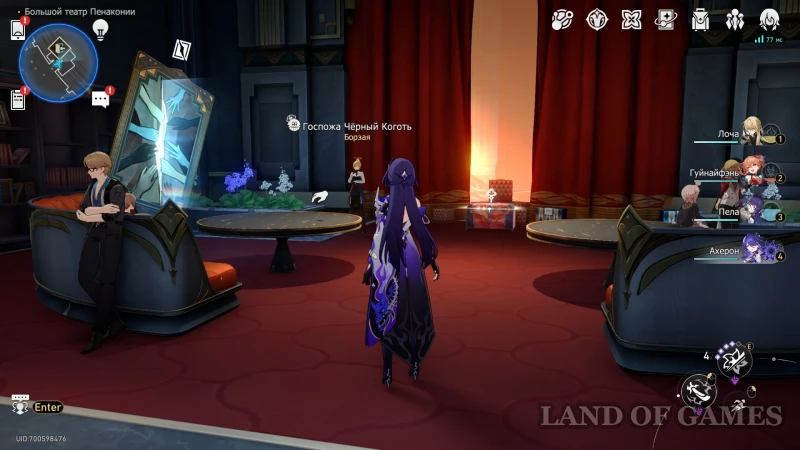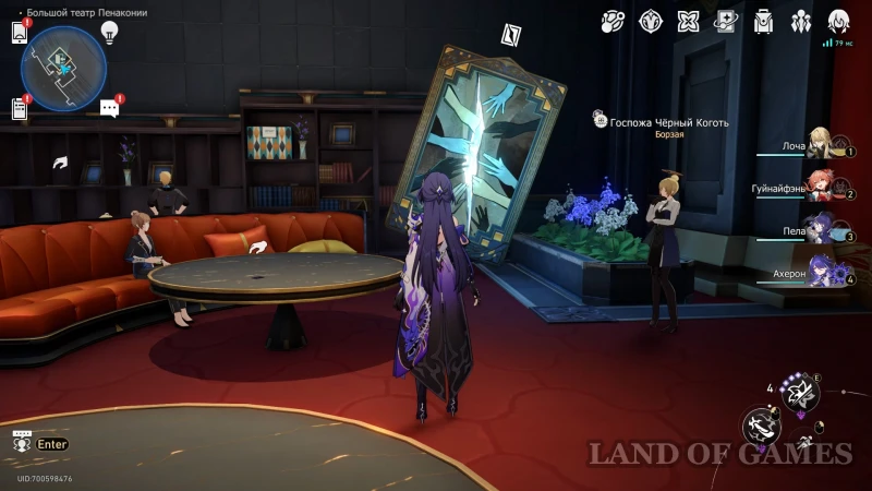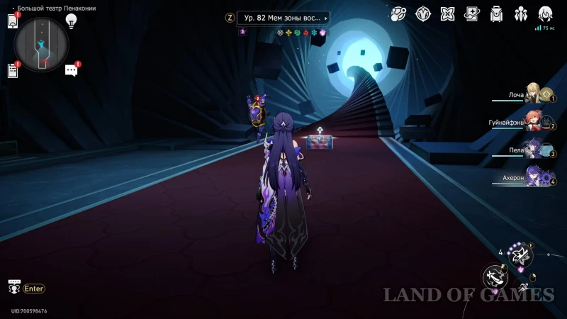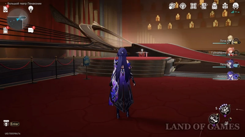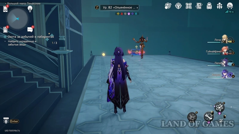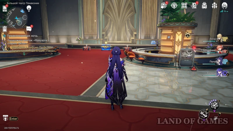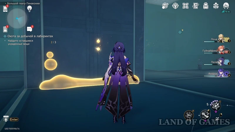 Теперь перейдем в восточную часть карты: сверните за ближайший занавес справа от якоря «Зал гармонизации». На входе, справа от мобов, стоит баннер с джентльменом в шляпе, а перед ним — обычный сундучок.