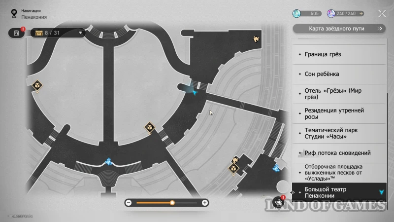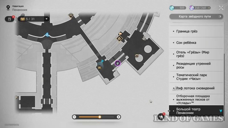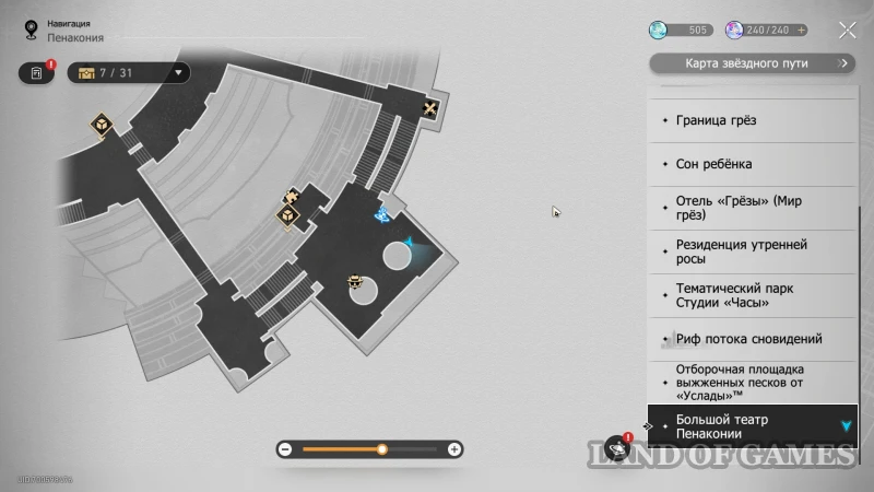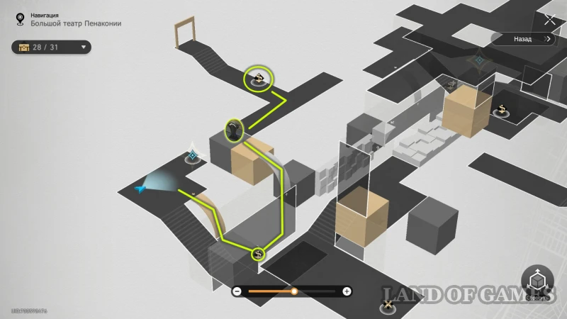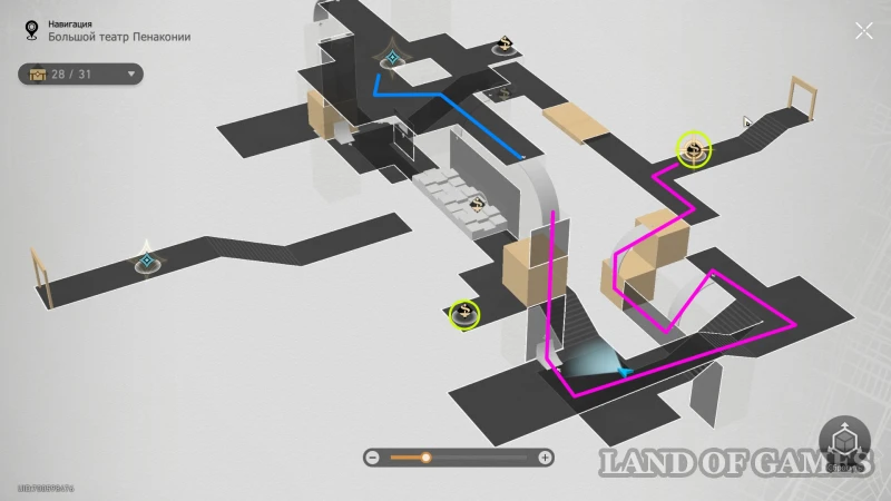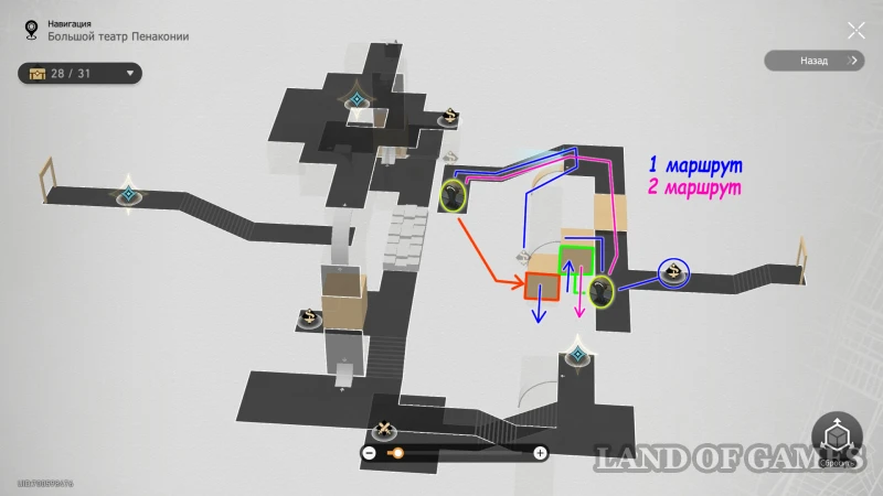 Последняя сюжетная 3D-область с названием «Ода порядку» находится за рамкой-телепортом около якоря «Зал гармонизации». Внутри расположены сундуки 25-30. Для вашего удобства мы отметили на картах места с модулями грез.