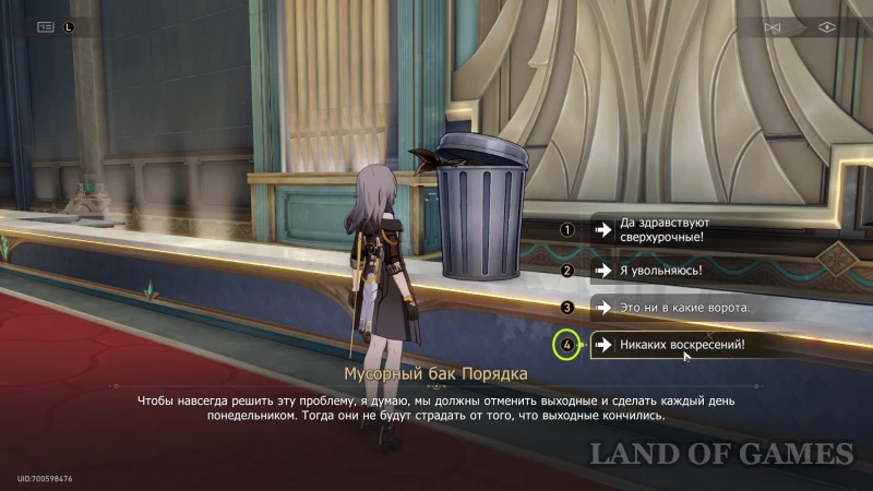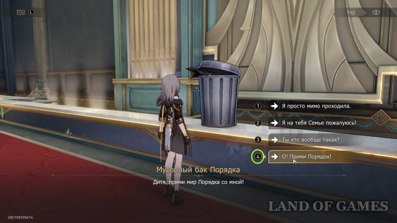 Чтобы отвечать в духе пути Порядка и не разозлить бак, выберите следующие реплики: