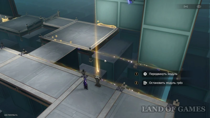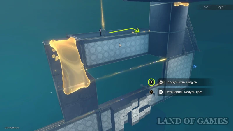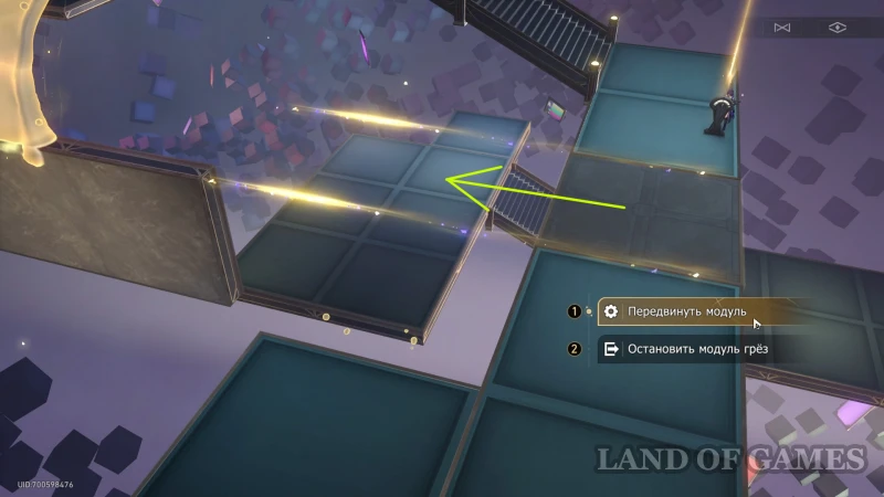 - Спуститесь по лестнице слева до второго модуля, который двигает нижний куб — сместите его в левую половину карты.
