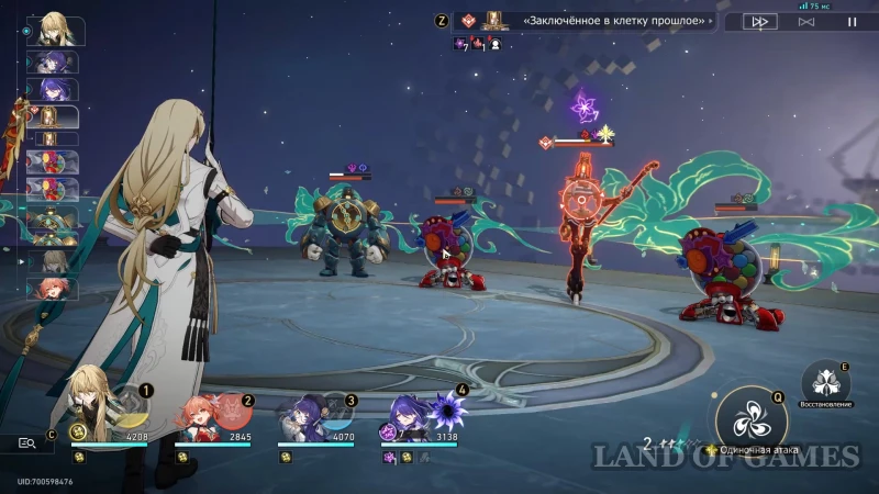 Около предыдущего трофея есть спуск к битве с сильным противником. Чтобы успешнее пробивать уязвимости врагов и получить роскошный приз, возьмите в пачку героев с Мнимым, Электрическим, Огненным, Квантовым или Ветряным элементами.