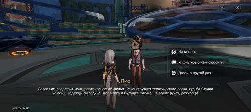 Телепортируйтесь на место съемок в парке Студии «Часы» и поговорите с Писом, чтобы приступить к монтажу. Выберите необходимый фильм в меню.