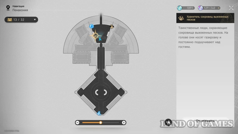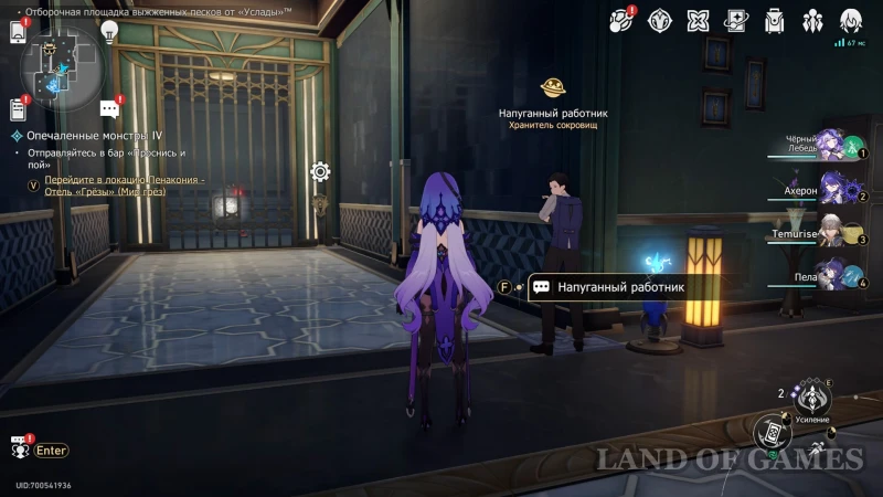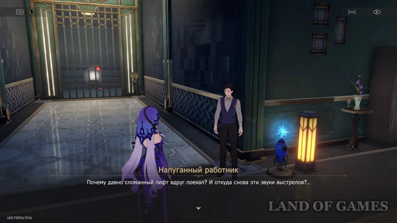 На карте с испытаниями Хану вам нужно пройти к лифту на первом этаже (если дверь прямо по коридору открыта — спокойно через нее, а если нет, то через проход в образе гномика-волчонка). Около подъемника дрожит напуганный Хранитель сокровищ, озадаченный функционированием ранее нерабочего лифта.