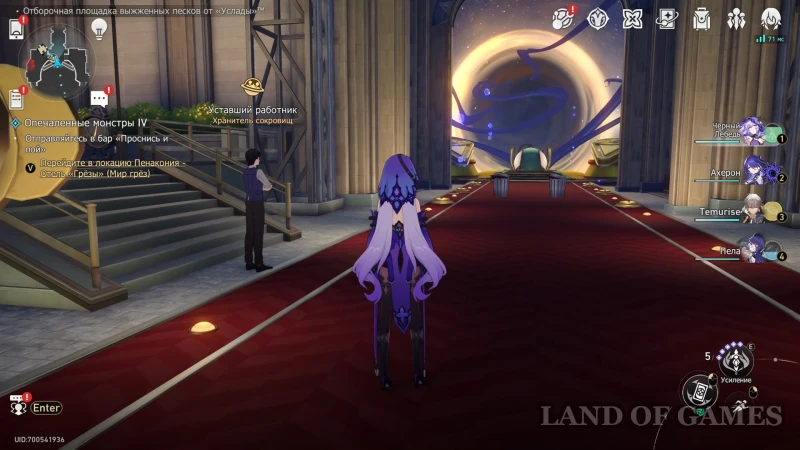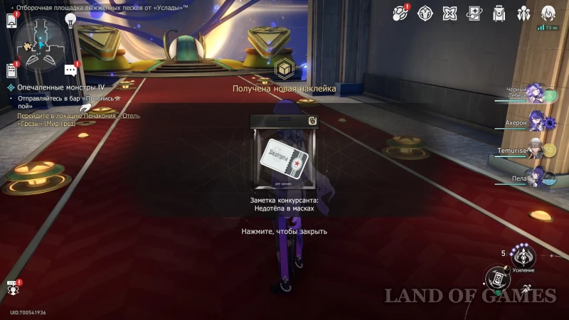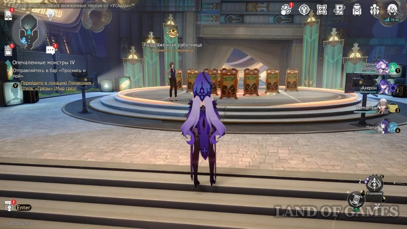 Нарушительница уязвима к Квантовому, Мнимому и Физическому элементам, а два помогающих ей вражеских юнита — к Огненному и Ветряному. За победу дадут стандартную награду из 60-и нефрита и ресурсов для прокачки.