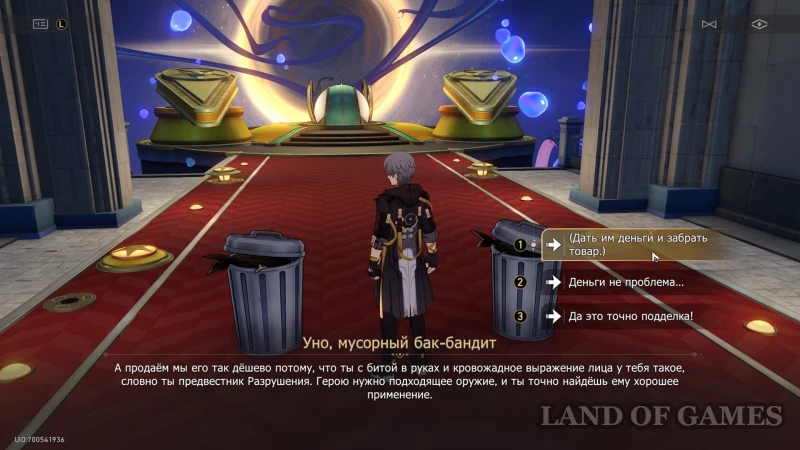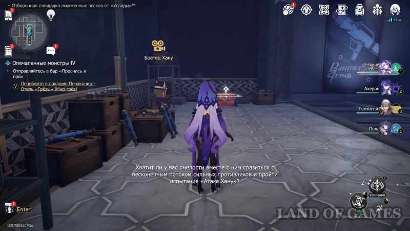 Идите к шахте подъемника и прокатитесь на «???» уровень. Тут, на -2 этаже площадки, мы встречаем самого Хануну. Поговорите с ним, а уже на выходе из игрового меню «Атаки Хану» — и с Господином Газировкой. Режим «Атаки Хану» и один обычный сундучок — это и есть сокровища «Невыбранного пути (часть 3)».