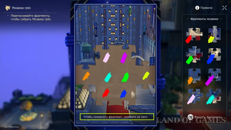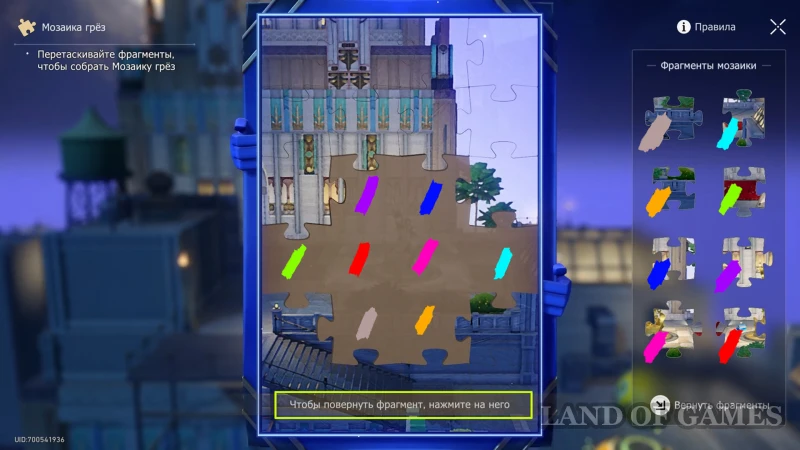 На скриншоте выше показали, как правильно расположить детальки на общей панели (ставьте цвет к цвету, по необходимости поворачивая пазлы). После двигайтесь к ближайшему Сферомету и стройте маршрут до второй картины на правой крыше:
