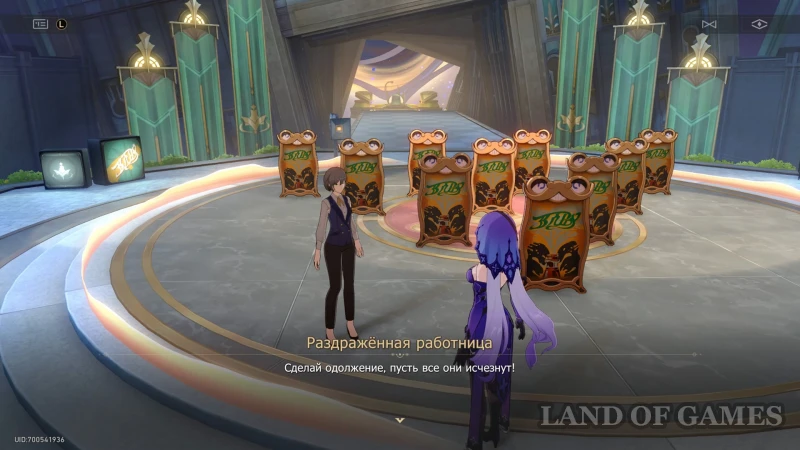 Перед сценой на карте «Арены I» нас ждет небольшое ЧП — раздраженная Хранительница сокровищ просит избавиться от целого клина надоедливых рекламных баннеров.