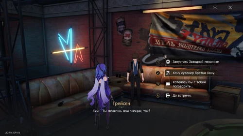 При начале беседы Грейсен начнет расспрашивать вас о братце Хану. Судя по всему, ваши ответы ни на что не влияют, поэтому необязательно отвечать правильно. Затем снова вступите в диалог с парнем и выберите вариант «Хочу сувенир братца Хану»