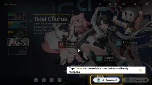 Теперь вы можете потратить 20 блестящих приливов (награда за предрегистрацию) и накопленные астриты на Хор прилива (Tidal Chorus) или баннер новичка. Мы советуем вам выбрать последний, так как это может пригодиться вам в будущем. Итак, сделайте 20+ круток и надейтесь на получение нужного результата, который представлен в трех вариантах: