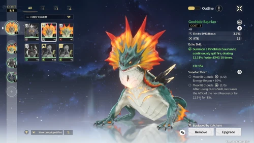 - Каждое эхо имеет определенную стоимость (Cost), которая может варьироваться от 1 до 4 в зависимости от его класса. В начале каждый резонатор имеет лимит стоимости (Cost Limit) в размере 8 единиц, который впоследствии можно повысить до 12. Таким образом, вы в любом случае не сможете, к примеру, во все 5 слотов поместить эха со стоимостью в 4 единицы.