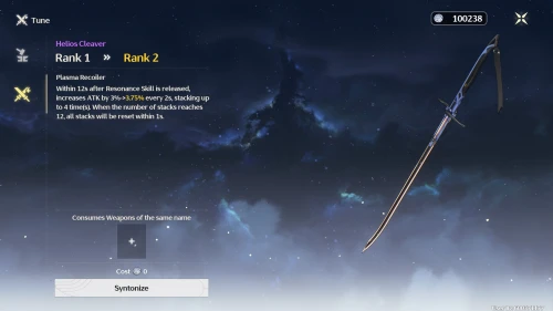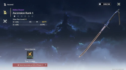 У оружия тоже можно повышать уровень от 1 до 90-го (и пройти 6 этапов возвышения), увеличивая тем самым его характеристики, и усиливать его пассивную способность путем повышения ранга (требуются дубликаты вооружения).